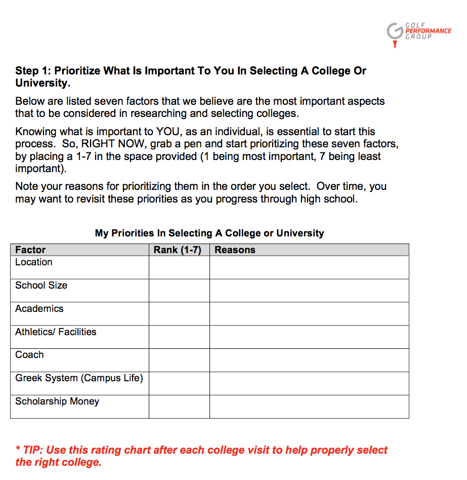 Similar to working on your golf game, we need to establish a baseline for where you are currently at in the college recruiting process.