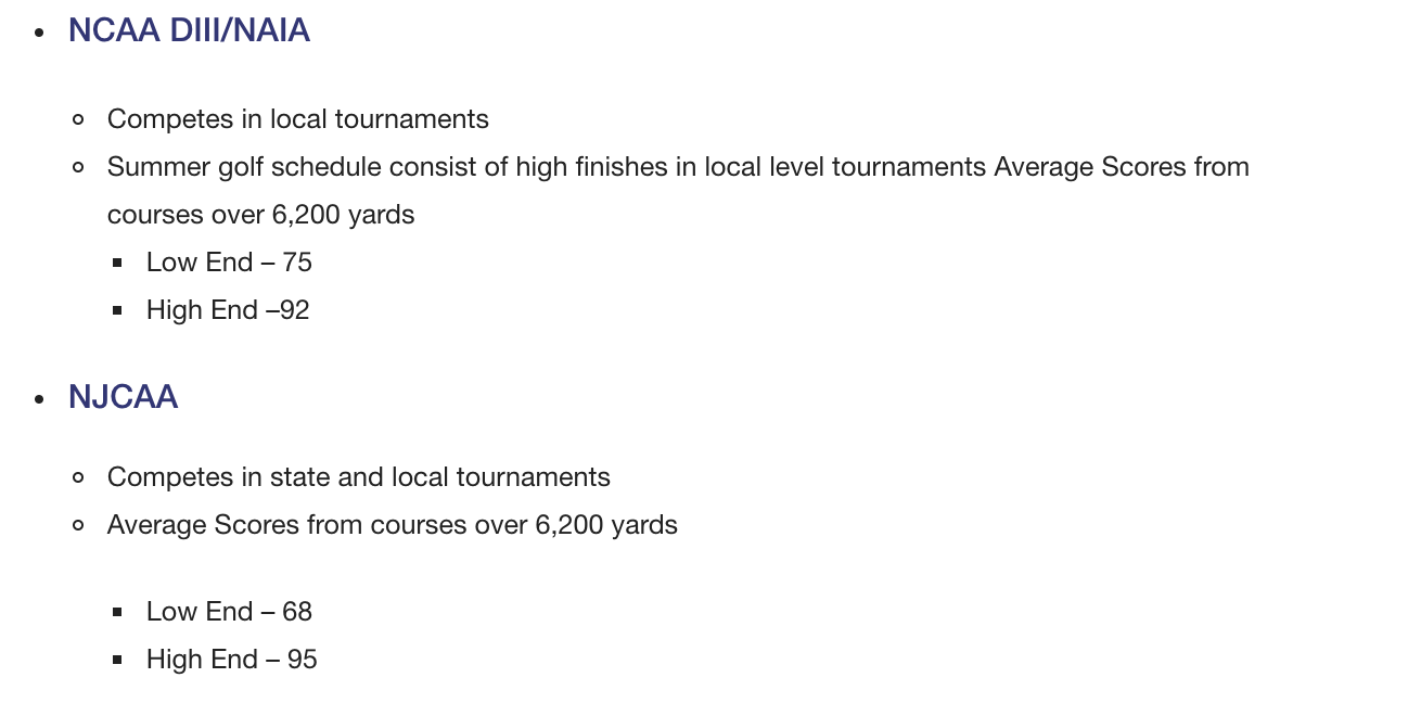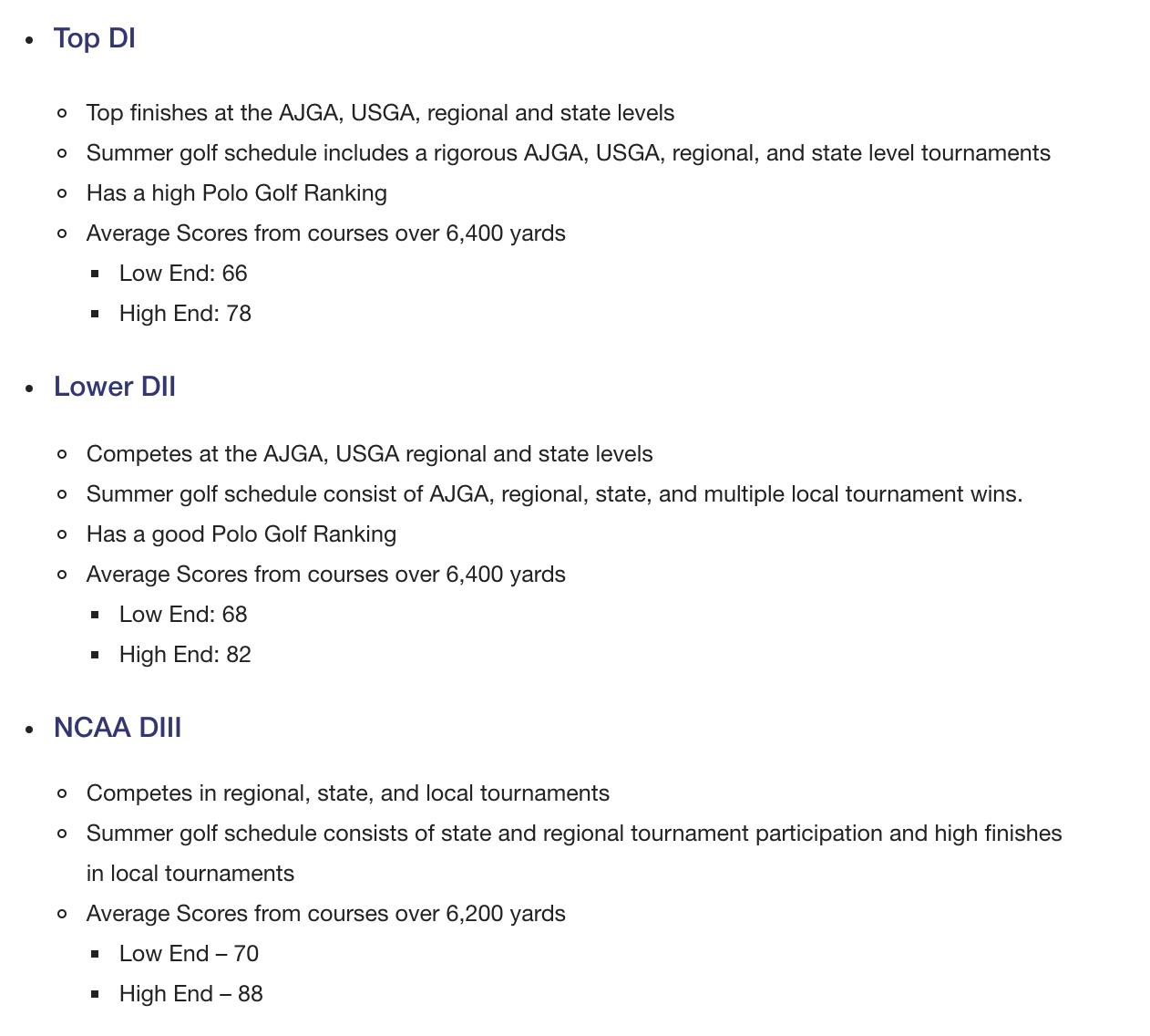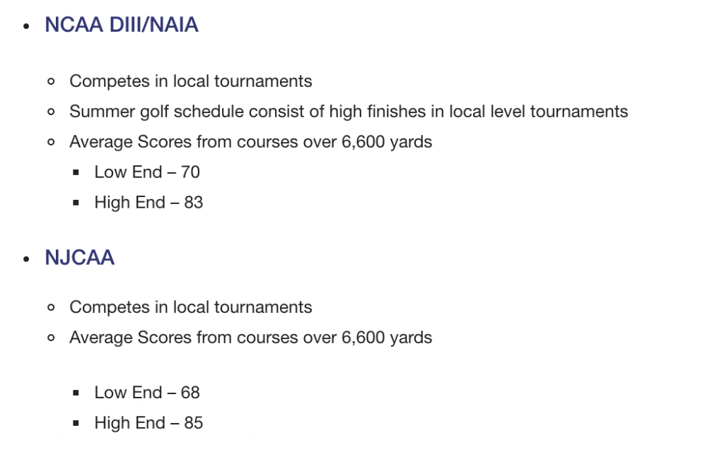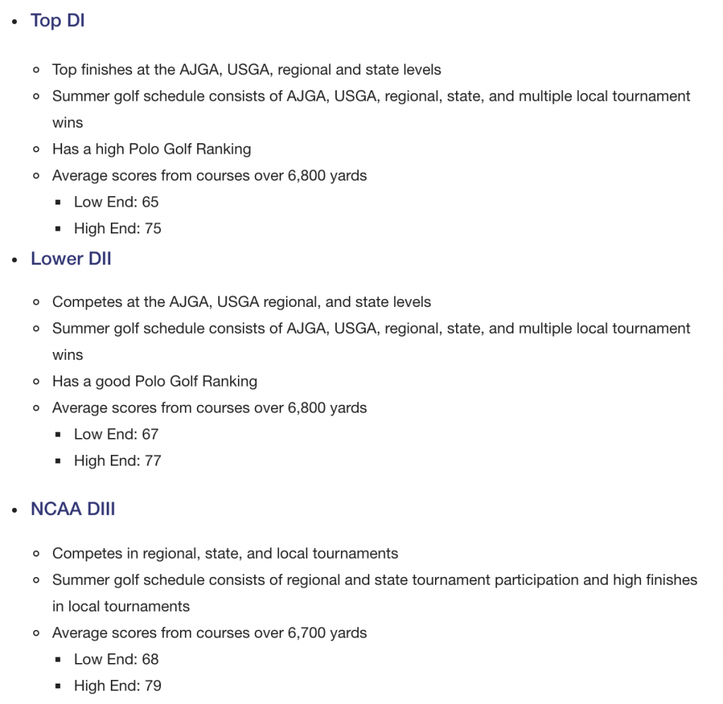- NCAA DIVISION 1 RECRUITS Junior Golf/High School Scoring Averages