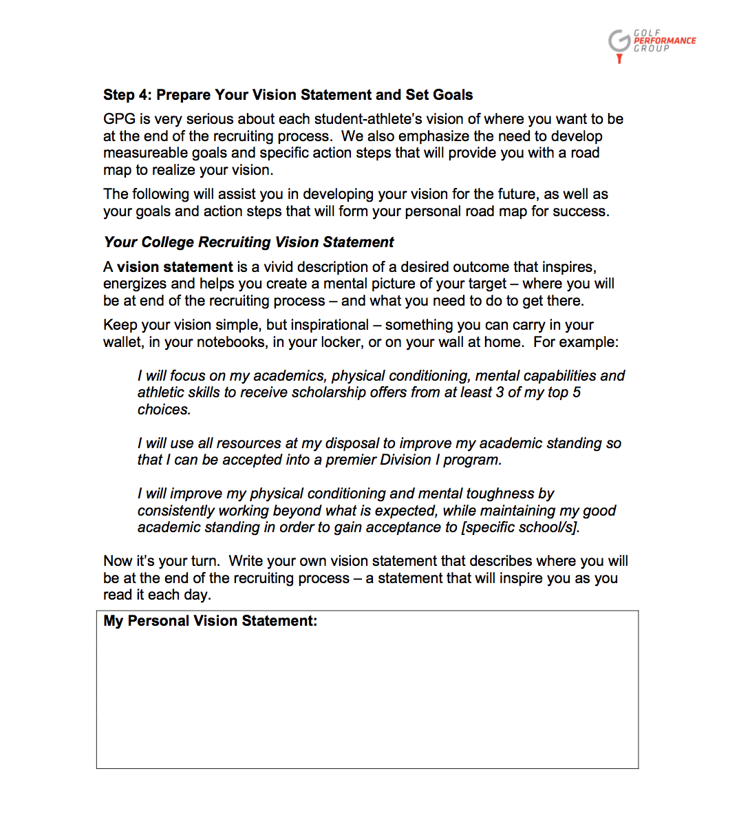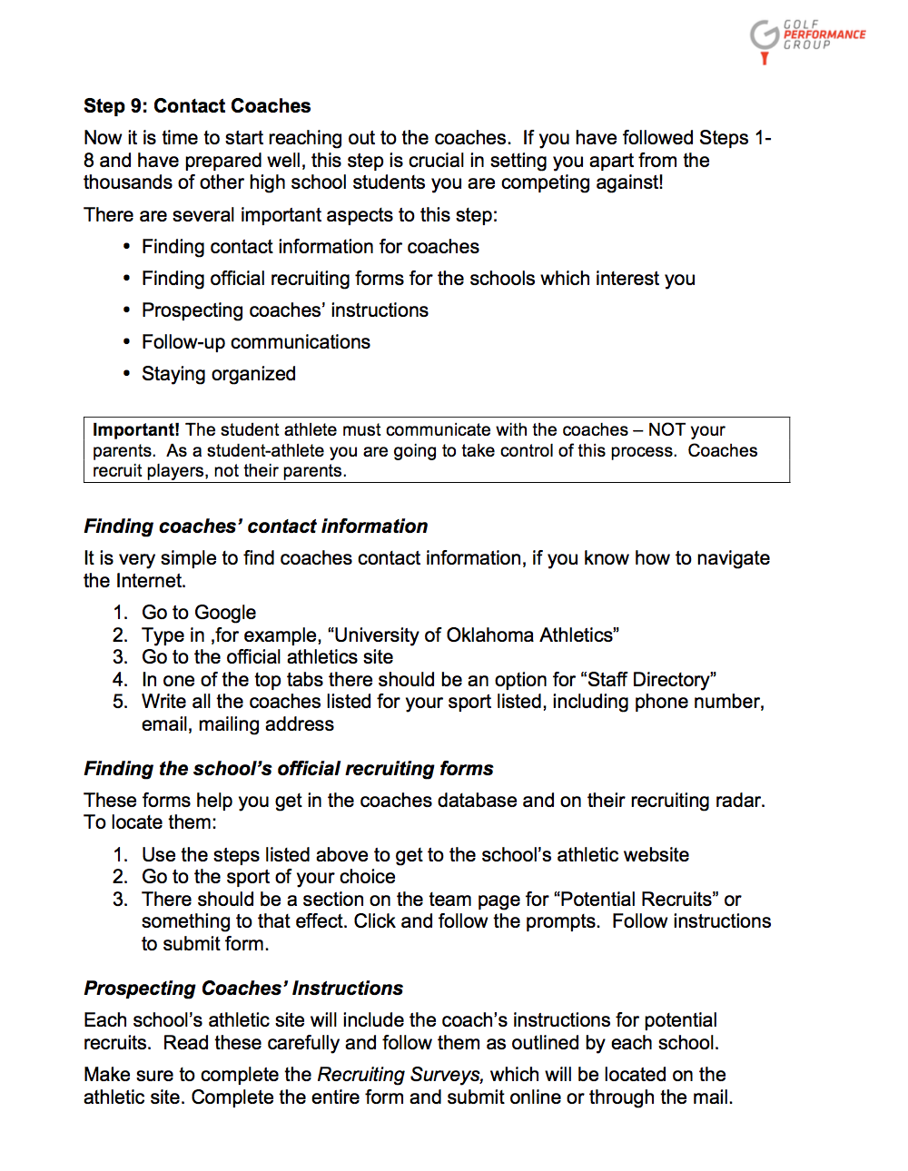For these reasons GPG originally developed this manual, which contains an easy 10-step process to make it as simple as possible for you to obtain the college scholarship of your dreams and to GET RECRUITED NOW!