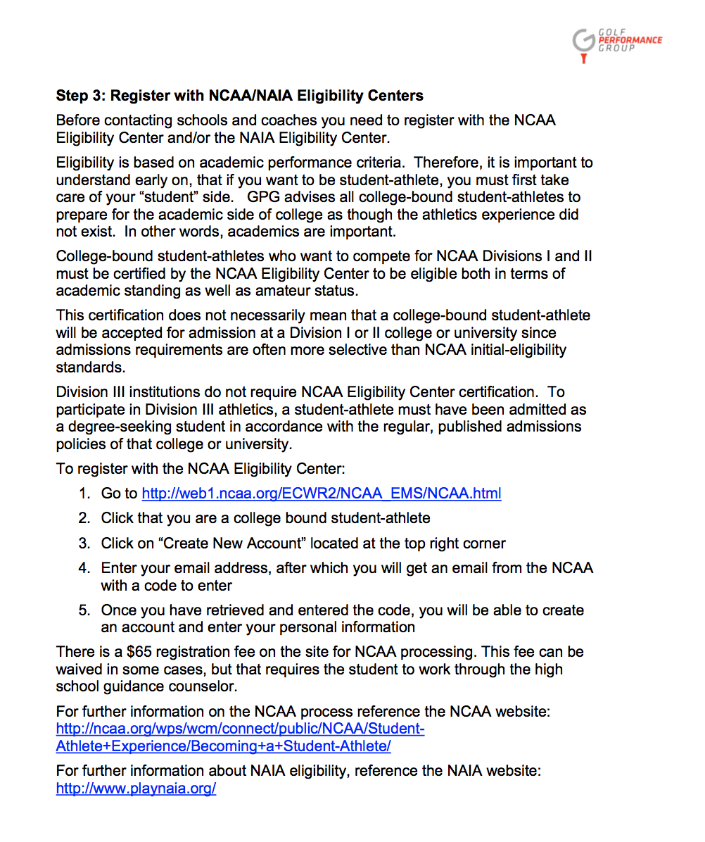 - You are registered with NCAA Clearinghouse, so the coach knows you are eligible, which takes away 50% of the coach’s worry about a recruit.